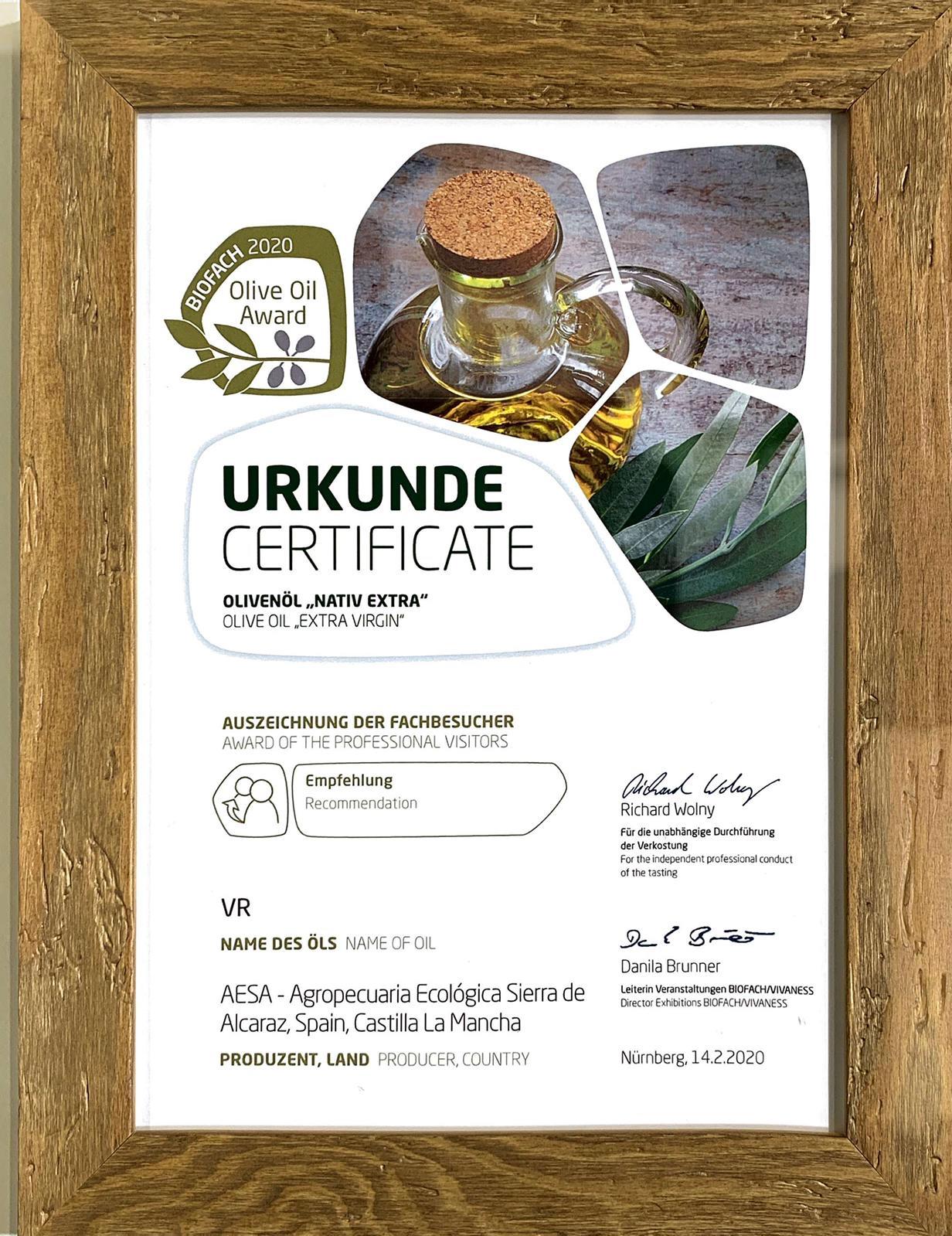 Leer másEl aceite Ecológico “VR Organic” Premium ha obtenido DIPLOMA en la feria BIOFACH 2020