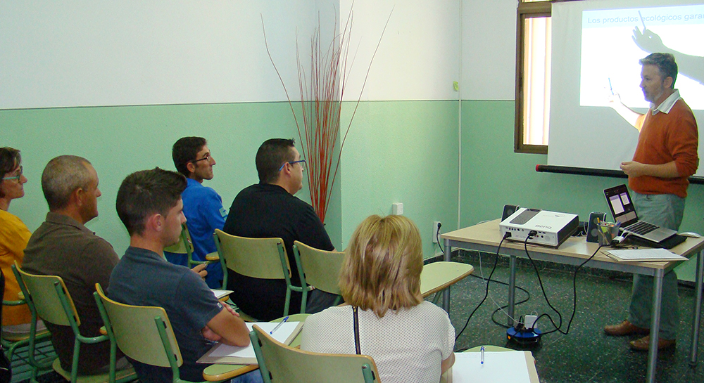 El curso ha sido organizado por la Asociación Ecológica Tierra Verde, y ha sido impartido por varios profesionales del sector. Entre ellos, Javier Márquez que nos habló de la importancia de la Ecología y el consumo de productos ecológicos, Pilar Gallego que dio unas dotes sobre la cumplimentación del cuaderno de campo, Vicente Rodríguez Niño, como técnico de la asociación, trató con los alumnos temas de vital importancia como puede ser el control de plagas y los diferentes laboreos, además de organizar una salida a una finca de olivos ecológicos. También nos visitó un técnico de la certificadora CAAE, David Vaquerizo, para hablarnos con detalle del proceso de certificación, y como olvidarnos de las ponencias dos importantes personalidades del mundo de la ecología, D. Manuel Pajarón y D. José Gallego, especialistas a nivel nacional que nos hablaron sobre «Ecología de la Agricultura» e «Importancia de nuestros suelos y nuestros abonos, para hacer viable nuestras fincas», entre otros.