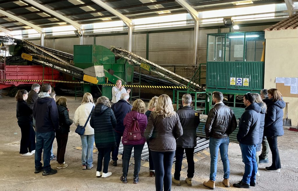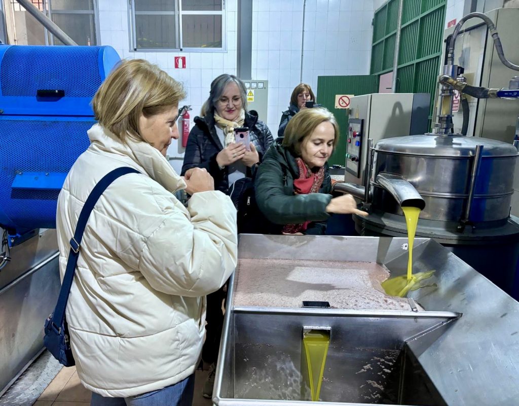 Tras el acto de presentación, José Gilabert como presidente de la Cooperativa y Mª del Mar la Gerente, fueron los responsables de guiarnos por las instalaciones de la almazara explicando todo el proceso desde que llega la aceituna hasta que se obtiene el aceite, además de la diferenciación entre líneas de molturado, ecológico y convencional.